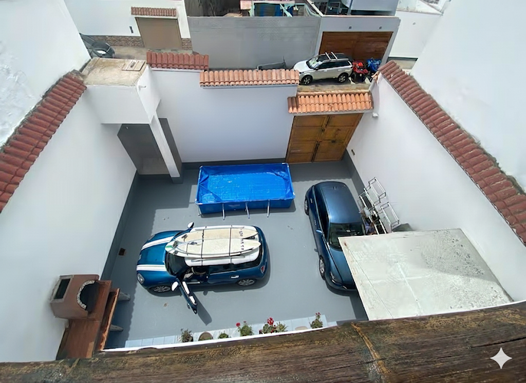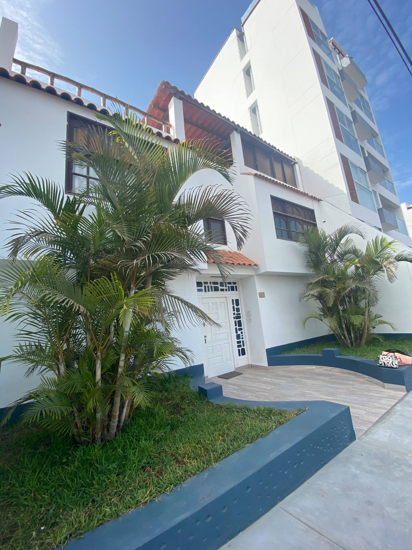 Casa de playa a la venta en Punta Hermosa — 240 m², 3 pisos, 7 dormitorios, 3 baños, 1 cocina, 1 sala/comedor — 1 terraza con parrilla empotrada, área para kitchenette y ligera vista al mar — 1 cochera/patio con 2 estacionamientos, ducha para limpiarse la arena y parrilla fija. $390,000 — A unos pasos de Playa Blanca, seguridad 24/7 con dos tranqueras, espacio para dos carros en el frontis.